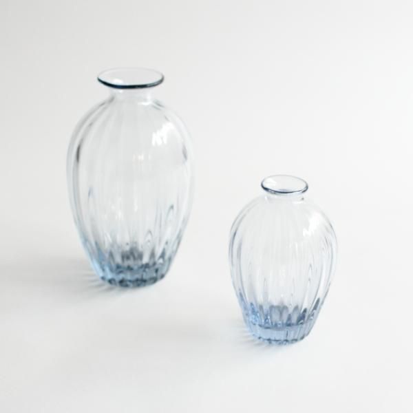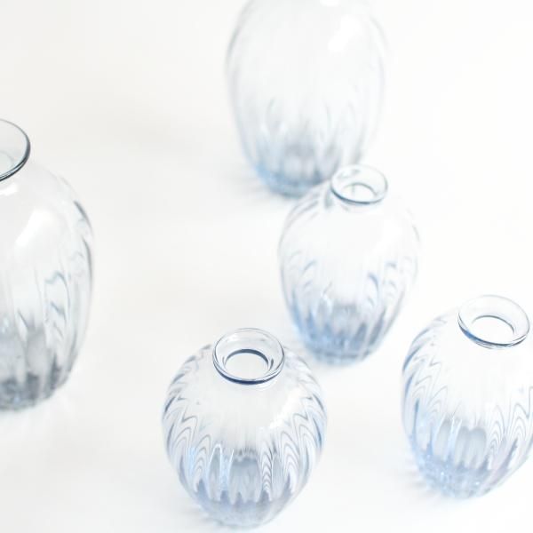 ヒロイグラススタジオのGRICE(グライス)シリーズは、透明ガラスにお米を発色原料の一つとして溶かし込んだ淡い青色のガラスです。